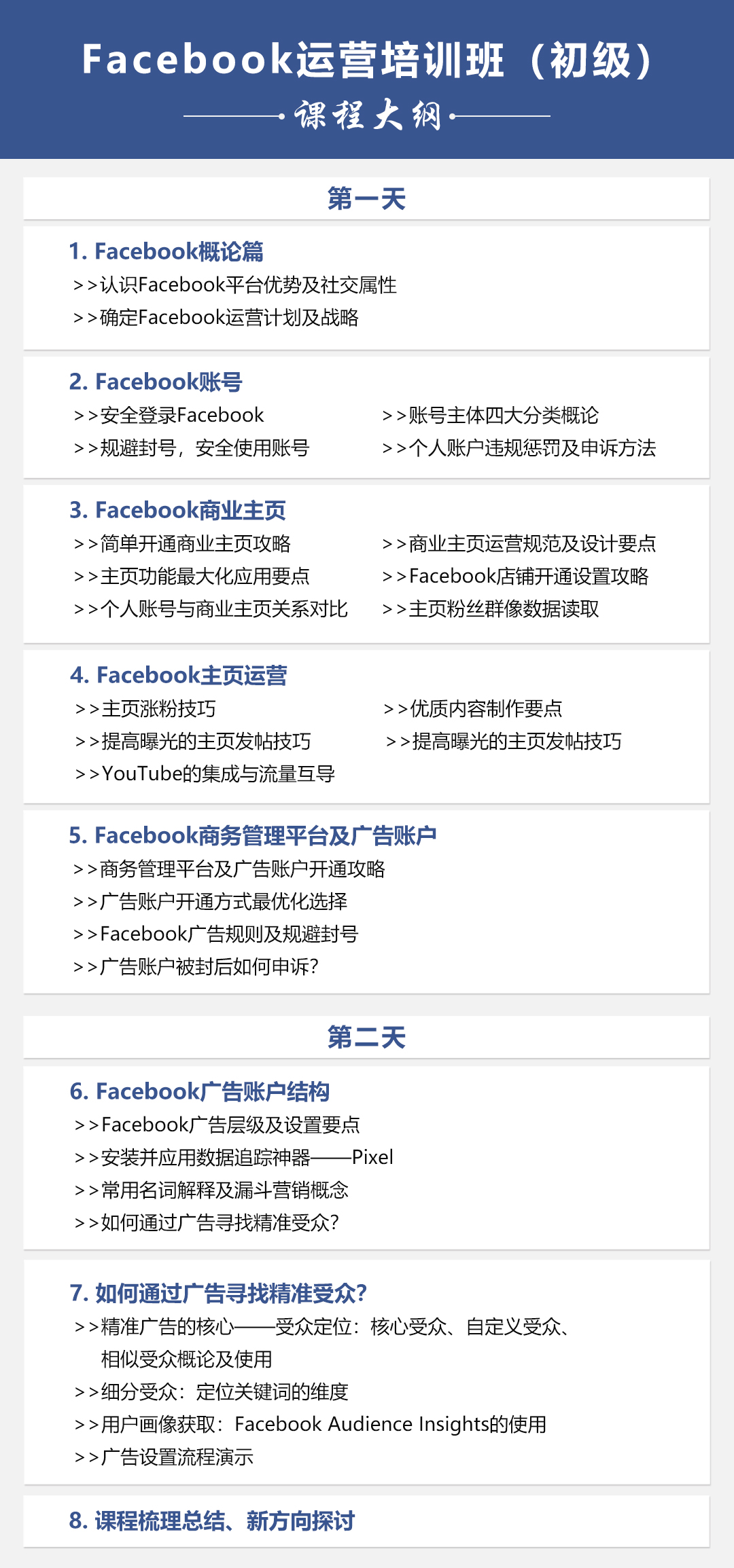 4、參加過Facebook中級(jí)班,但缺少基礎(chǔ),對(duì)平臺(tái)缺少系統(tǒng)認(rèn)識(shí);