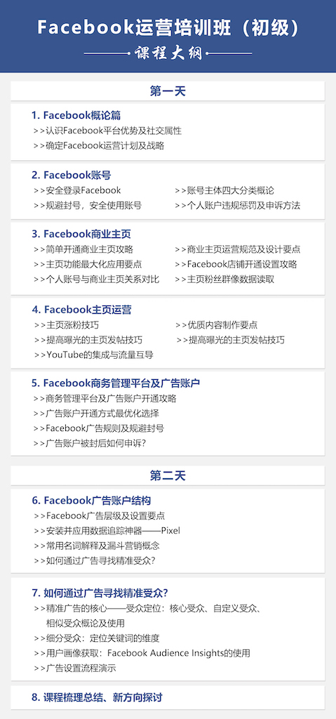 4、參加過(guò)Facebook中級(jí)班,但缺少基礎(chǔ),對(duì)平臺(tái)缺少系統(tǒng)認(rèn)識(shí);