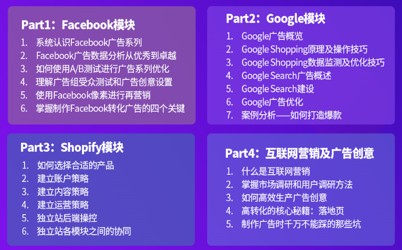 課上學(xué),課后練的實操模式是這門課程最大的特點,能高限度地幫助學(xué)員提升多渠道廣告投放能力和獨立站運營能力,系統(tǒng)建立跨境營銷知識體系。