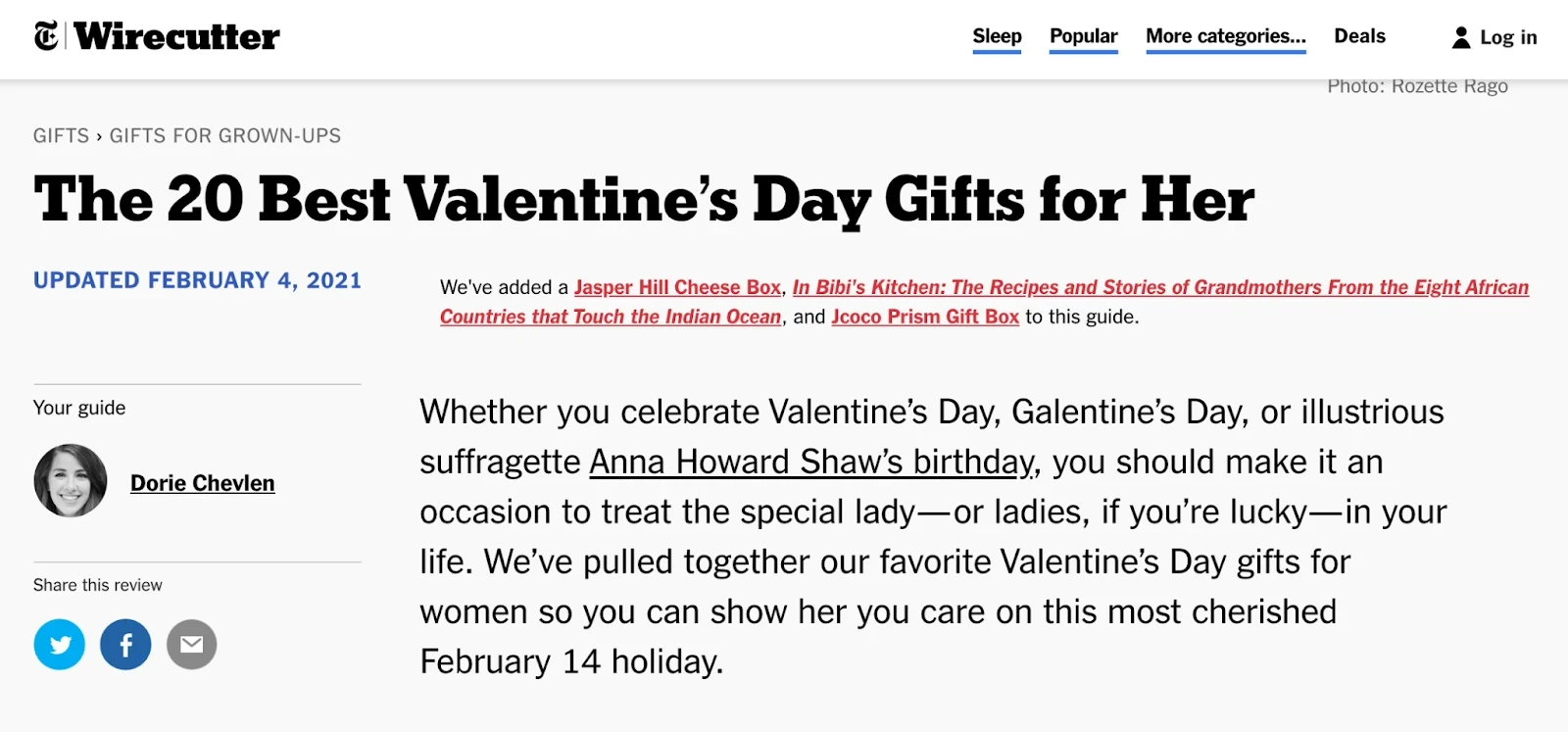 禮物指南是推薦產(chǎn)品或禮物創(chuàng)意的列表,通常以節(jié)假日(例如圣誕節(jié))或某個角色(例如父親)為中心。如果你曾經(jīng)在谷歌上搜索過禮物創(chuàng)意,那么你可能已經(jīng)見過一些禮物指南了,比如這份《紐約時報》的情人節(jié)禮物指南。