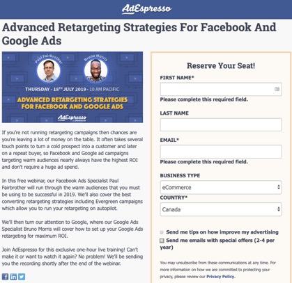 該廣告將人們帶到了我們的網(wǎng)頁,在表單提交時(shí)就會(huì)觸發(fā)了“完成注冊(cè)”像素事件。
