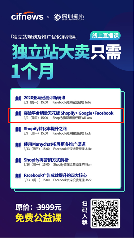 直播課程:《突破平臺銷量天花板 Shopify+Google+Facebook》