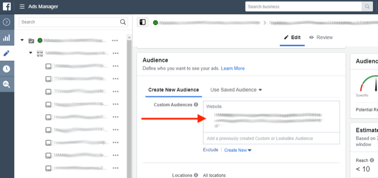 然后向下滾動到“受眾群體”部分并記下受眾群體名稱。對你的每個主要廣告組重復此過程,以編制表現最佳的自定義受眾群體列表。