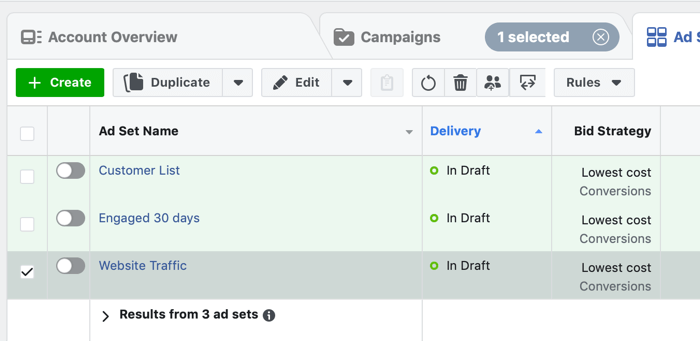 由于你一直在進行閃購熱身活動,因此你現(xiàn)在可以設(shè)置多個針對不同受眾的廣告組。其中應(yīng)包括: