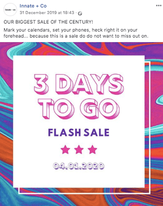 除了這些主要帖子之外,F(xiàn)acebook故事(Facebook stories )和Instagram故事都可以提供更多的自然曝光。在你的倒計時帖子旁邊,分享2至3條有關(guān)你產(chǎn)品的每日故事帖子。包括促銷提醒、日期和特色功能。你不是簡單地分享促銷折扣,而是將真實的產(chǎn)品具體化,從而幫助用戶可視化他們所節(jié)省的開支。