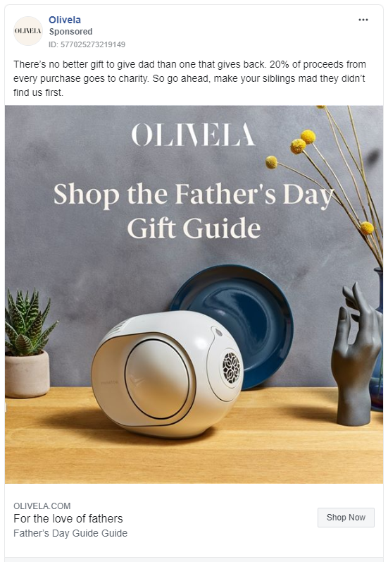 例如,服裝和配飾業(yè)務(wù)Olivela刊登了父親節(jié)禮物指南的廣告,指南鼓勵(lì)消費(fèi)者瀏覽產(chǎn)品,并查看更多的產(chǎn)品。