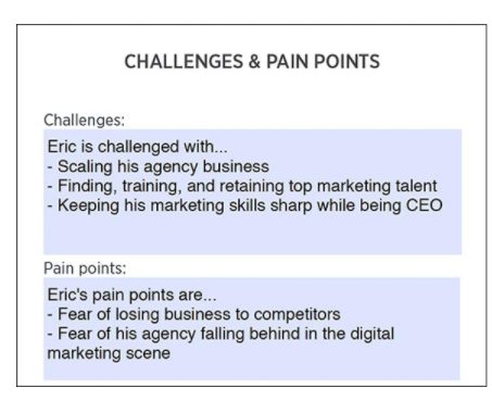 以下是我們的客戶化身所帶來的痛苦和挑戰(zhàn),這些使你對目標(biāo)有所了解: