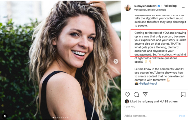 回到Sunny的帖子,她談到了企業(yè)主的受眾群體以及他們不知道如何吸引Instagram參與所面臨的挑戰(zhàn)。她通過談?wù)撍麄冊诳此朴罒o止境的尋求更多參與中所看到的東西來與他們建立聯(lián)系。